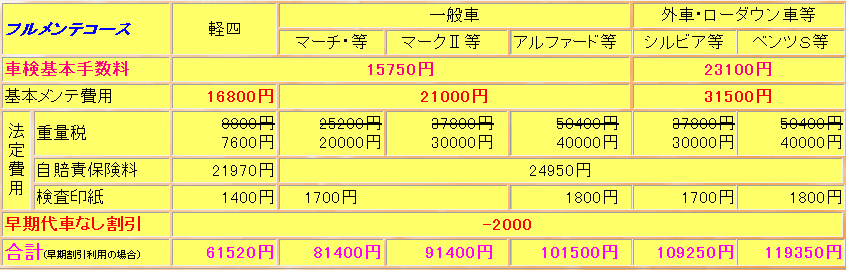 車検ご入庫予定日から1ヶ月前までにお電話で車検の日時をご予約いただいた場合早期予約割引で1000円引きに、また無料代車をご利用いただかない場合も1000引きになり、合わせての2000円割引きなります。